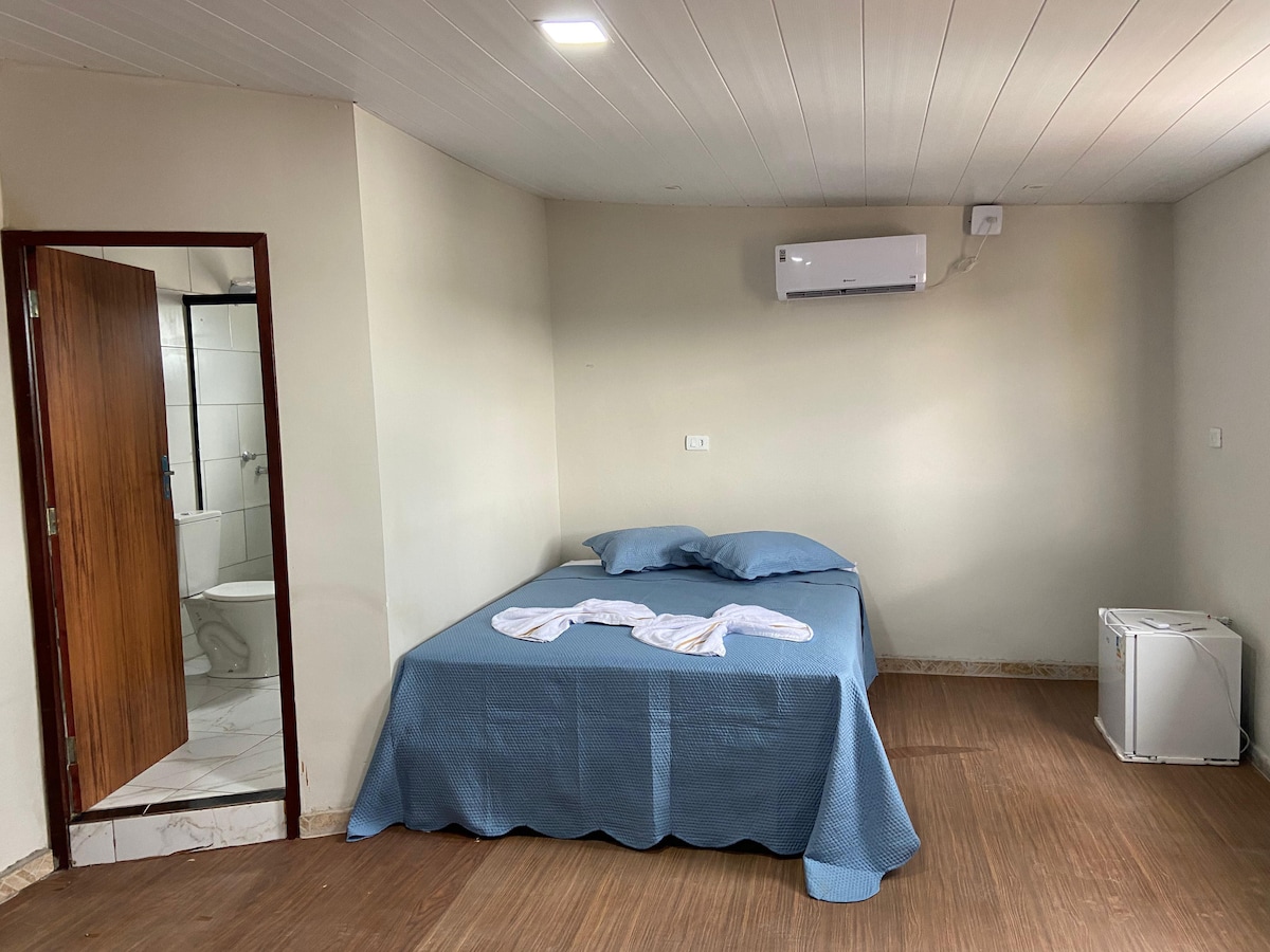 Adoptez la simplicité dans cet endroit calme et bien situé. À seulement 1 300 m du centre-ville, situé en face de la place Adriana Carla de Souza. Rue sûre, télévision 70 pouces, lit confortable, climatisation, ustensiles ménagers, purificateur d'eau froide, Internet fibre optique 200 Mo, Netflix, Premium Youtube, assistance 24h/24, avec deux chambres avec lit queen size, rideaux occultants et canapé-lit. Appartement au 1er étage.