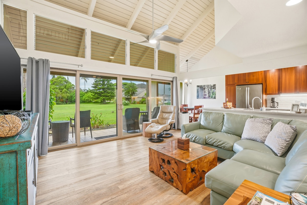 Puu Poa 102 est un appartement privé récemment rénové dans la communauté convoitée de Princeville en bord de mer. Ce magnifique appartement en rez-de-chaussée de 2 chambres/2 salles de bain s'ouvre sur une grande pelouse avec une vue imprenable. Montez sur vos deux lanais privés pour profiter d'une vue imprenable sur le Pacifique et de brises rafraîchissantes, au-dessus de Hideaways Beach, où les baleines peuvent être aperçues en hiver et les surfeurs et les dauphins sont présents toute l'année. Récemment mis à jour avec la climatisation partout, 102 est serein, et mis à part.