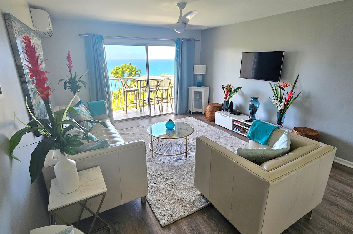 Élégant appartement avec vue sur l'océan à HBR, climatisation dans le séjour