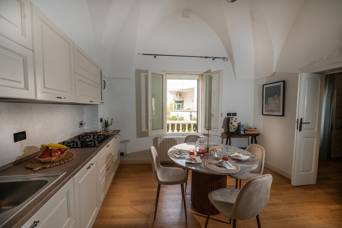 À 300 pieds de la place Saint Oronzo, du château, des restaurants et des musées, il y a un grand appartement au premier étage d'un bâtiment historique composé d'une cuisine, d'une salle à manger, de deux chambres, d'une salle de bain, de deux balcons et d'une merveilleuse terrasse panoramique. Il est finement meublé, adapté aux couples pouvant avoir un enfant jusqu'à 1 an, qui aiment séjourner dans le centre historique et avoir tout à distance de marche, sans renoncer à leur intimité.