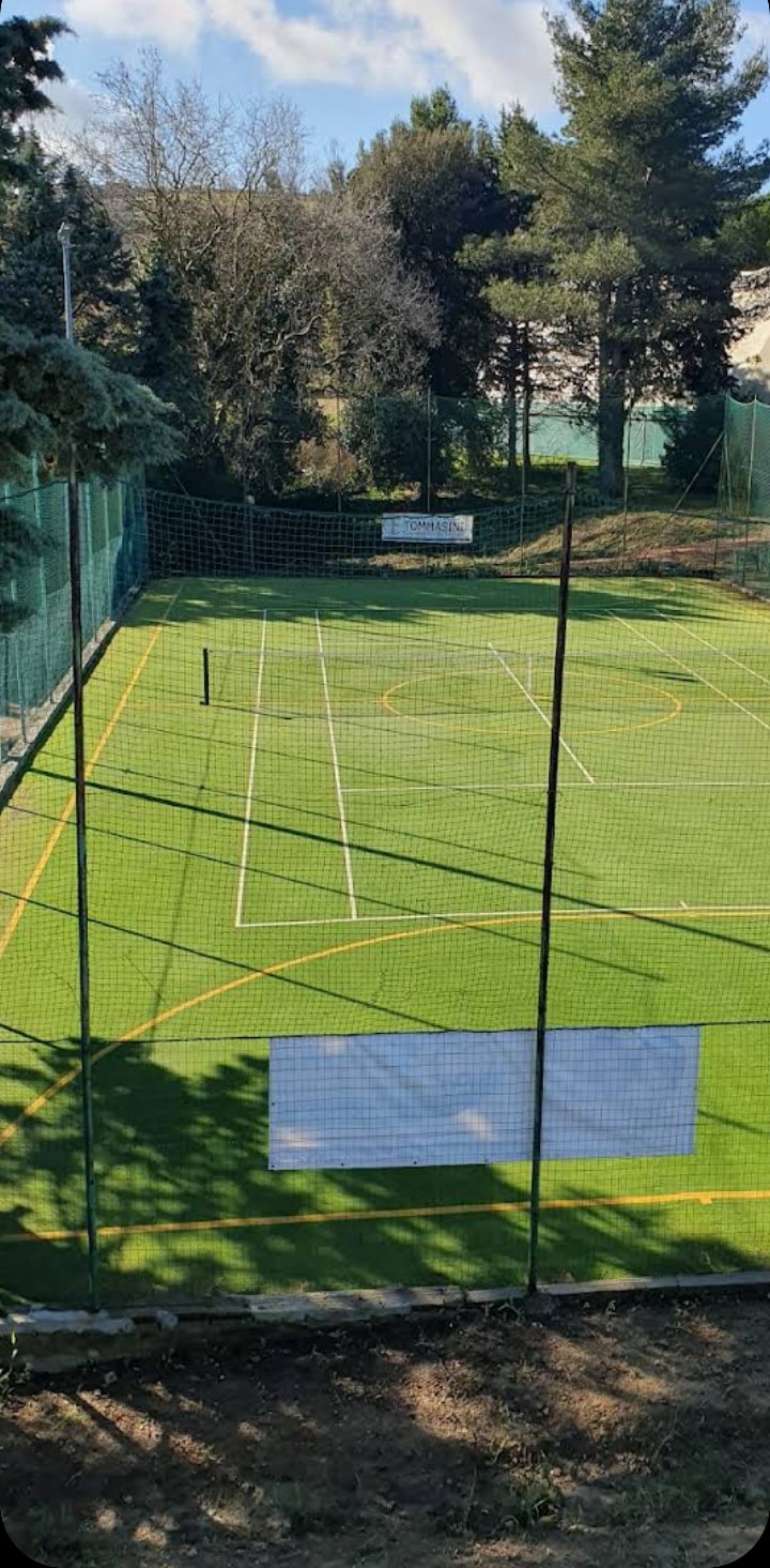 Luxueuse villa avec piscine, entourée de verdure à quelques minutes de la plage de Morcone. Le coin nuit confortable offre 3 chambres doubles et une avec des lits simples, chacune avec salle de bain privée complète, télévision et climatisation. Dans le salon, il y a une grande cuisine équipée, une table à manger avec un espace détente et une télévision connectée ; de là, vous accédez à la terrasse extérieure idéale pour déguster un excellent apéritif Place de parking