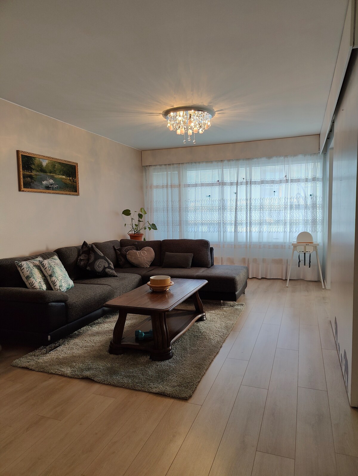 Triangle de 58 m² achevé en 2021, situé dans un endroit calme, mais avec de bonnes liaisons de transports en commun. Il convient parfaitement aux petites familles, aux personnes de passage ou, par exemple, aux clients d'un hôpital. Veuillez noter que l'appartement n'est pas situé en plein centre-ville. Le temps de trajet en voiture jusqu'au centre-ville est d'environ 15 minutes. Parking gratuit avec borne de recharge dans le garage. Il y a un arrêt de bus à côté de l'appartement. L'appartement dispose également d'un grand balcon vitré. Vaisselle pour au moins six personnes.