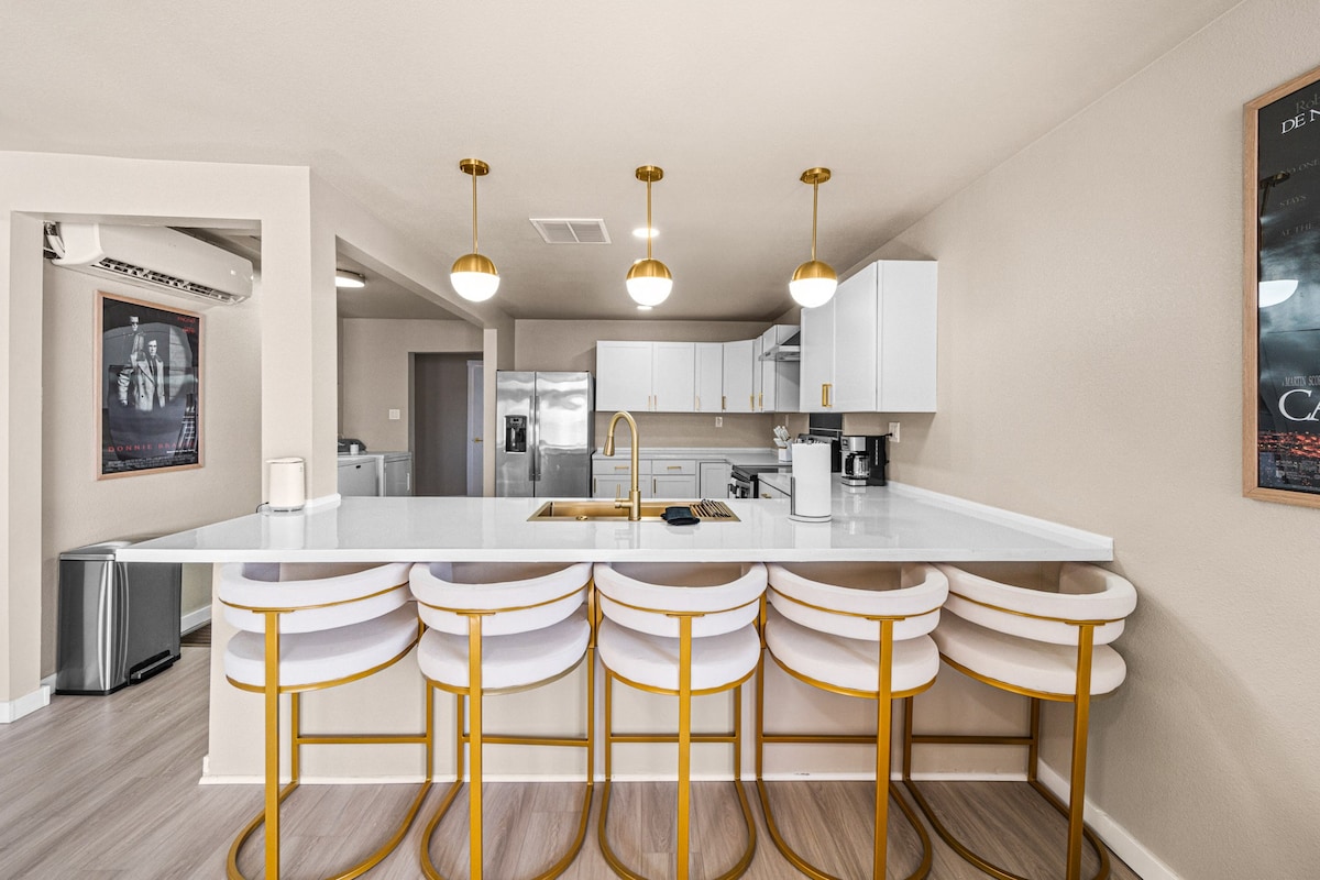 Bienvenue dans notre maison familiale unique dans le quartier historique de Mesa Junction. Les voyageurs séjourneront dans l'appartement de 2 chambres récemment rénové, de 1500 pieds carrés, au niveau du jardin, dans cette église convertie du début du siècle. L'appartement a un plan d'étage ouvert avec deux chambres de bonne taille, ainsi qu'une salle de bains élégante et une petite kitchenette. La propriété est située à distance de marche de nombreux restaurants et boutiques. C'est un bâtiment soigné, situé dans une rue calme et mignonne.