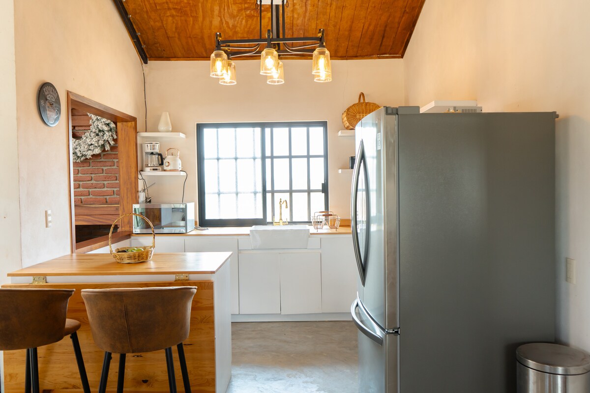 Profitez d'un bon repos à la montagne entouré de forêt de nuages. Le climat est agréable, les installations très propres, vous pouvez allumer un feu de camp, faire des promenades sur le domaine, voir des nuits et des levers de soleil spectaculaires. La maison est à l'intérieur de Finca Raices, wifi, eau chaude, cafetière, bois de chauffage pour cuisiner ou feu de camp, à 15 minutes en voiture de San Fernando et 40 de Tuxtla Gutierrez. Nous avons une ferme, un milpa, une pépinière, un lac, un palapa et une réservation facultative d'art-thérapie, de psychothérapie ou de yoga.