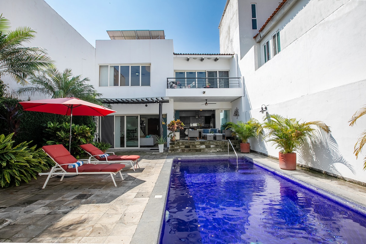 Maison neuve et moderne à Flamingos, Vallarta. À seulement 8 minutes à pied de la plage avec accès privé. 3 chambres (suite principale avec lit king-size), climatisation, cuisine entièrement équipée, Wi-Fi rapide. Piscine, salle de sport, jacuzzi, barbecue, centre d’affaires et aire pour enfants. Idéale pour les familles, les couples ou le télétravail. Le quartier le plus calme et le plus sûr de Vallarta.