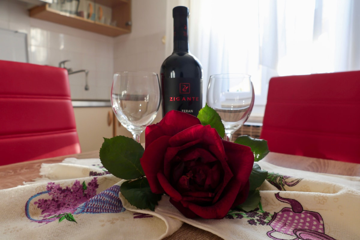 Appartements modernes dans un ancien bâtiment austro-hongrois au deuxième étage sans ascenseur au cœur même du centre-ville. Nos appartements sont situés à seulement 200 mètres de la porte d'Hercule et à 360 mètres de l'amphithéâtre de Pula. La mer (port de Pula) est à seulement 500 mètres des appartements et les plages les plus proches à environ 2,5 km. Nous veillons toujours à ce que l'appartement soit propre, soigné et parfaitement fonctionnel afin que vous puissiez commencer à en profiter immédiatement.