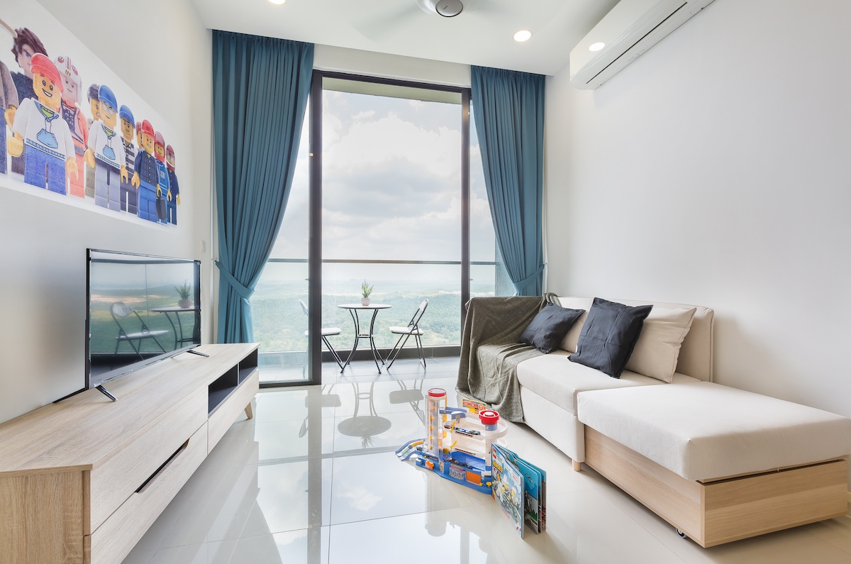 Notre maison minimaliste est votre paradis tranquille idéal. Échappez-vous de l'agitation quotidienne, plongez dans le confort tranquille et douillet. La belle vue sur la mer depuis les étages élevés et son excellent emplacement conviennent aux couples et aux familles entières qui recherchent une escapade. À seulement 5 minutes de Sg. À 3-5 minutes à pied de Familymart, Starbucks, restaurant, cinéma Sunway Big Box Retail Park, X Park, etc. À 8 minutes en voiture de Legoland. Ce logement paisible offre un séjour détente pour toute la famille.