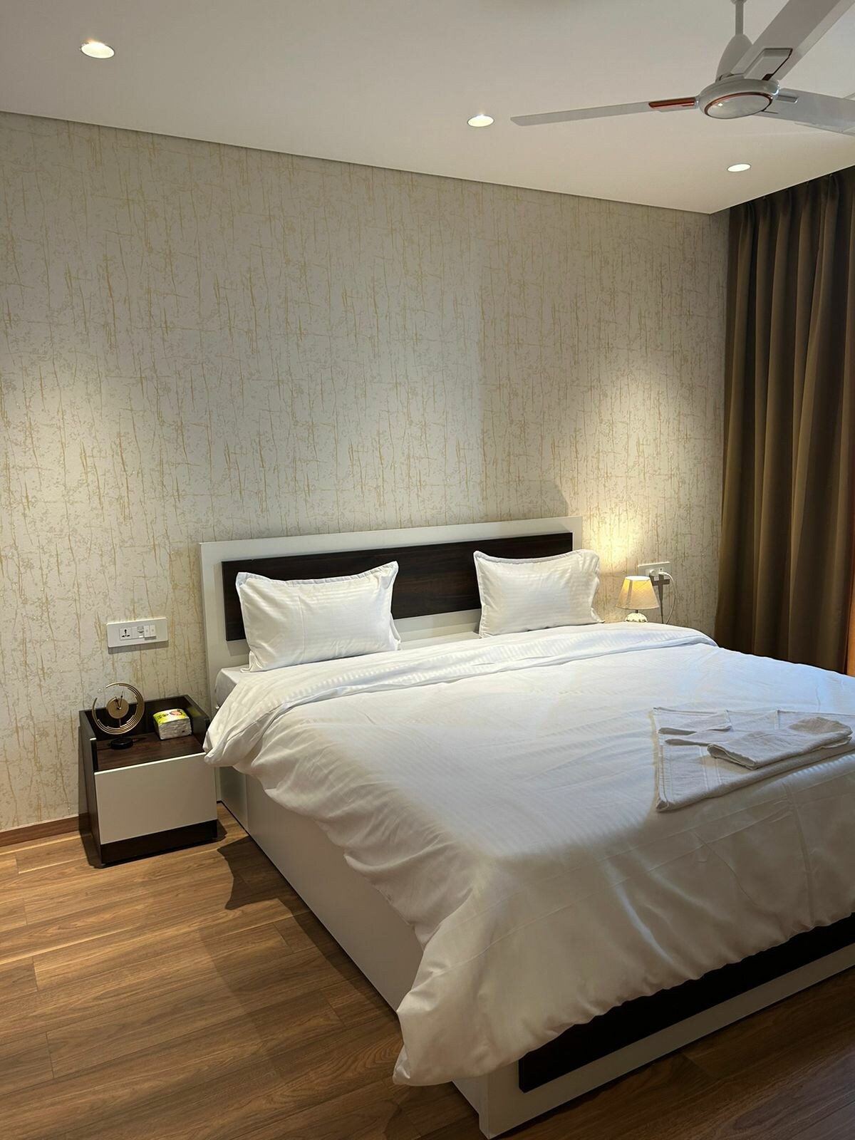 Entrez dans 404 Luxe Haven, un studio de 404 pieds carrés conçu avec soin, alliant confort moderne, éclairage chaleureux et intérieurs élégants. Doté d'un canapé en velours moutarde, d'un lit queen confortable encadré d'un rétroéclairage floral, d'une cuisine modulaire élégante et d'un balcon relaxant avec de la verdure, cet espace est parfait pour les célibataires, les couples ou les voyageurs d'affaires. Profitez d'une ambiance paisible avec un décor contemporain, des tons neutres doux et tout le nécessaire pour un séjour sans accroc.