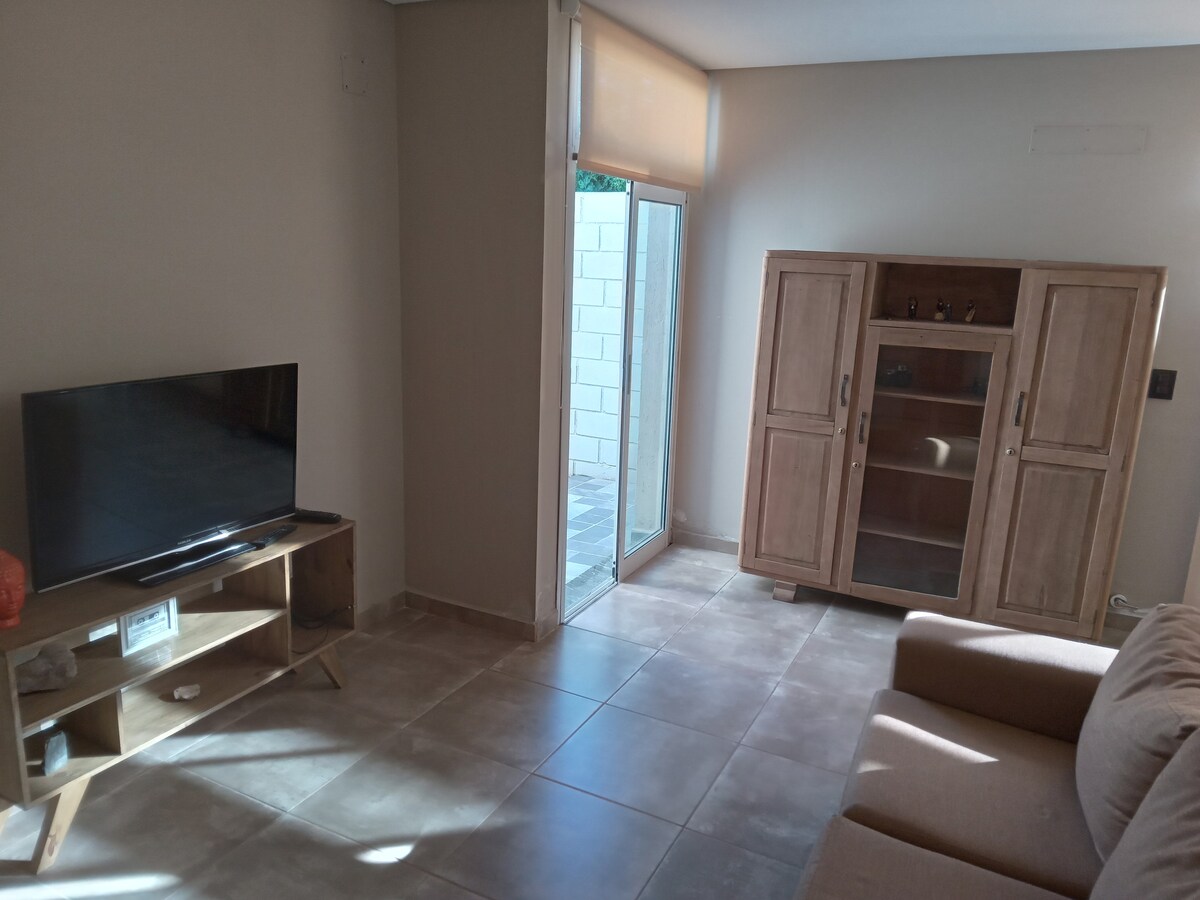 Idéal pour les couples, avec de grands espaces très confortables et un patio avec barbecue. Équipé d'une cuisine, d'un réfrigérateur, d'ustensiles de cuisine, d'eau chaude et de vaisselle. Emplacement stratégique entre le centre de Villa Carlos Paz et la zone des rivières et des stations balnéaires de San Antonio de Arredondo et Cuesta Blanca. Endroit très calme et avec des commerces à proximité et un supermarché à quelques pâtés de maisons pour faire les courses quotidiennes. Il dispose d'un garage privé couvert, son accès se fait par un portail électrique avec télécommande.