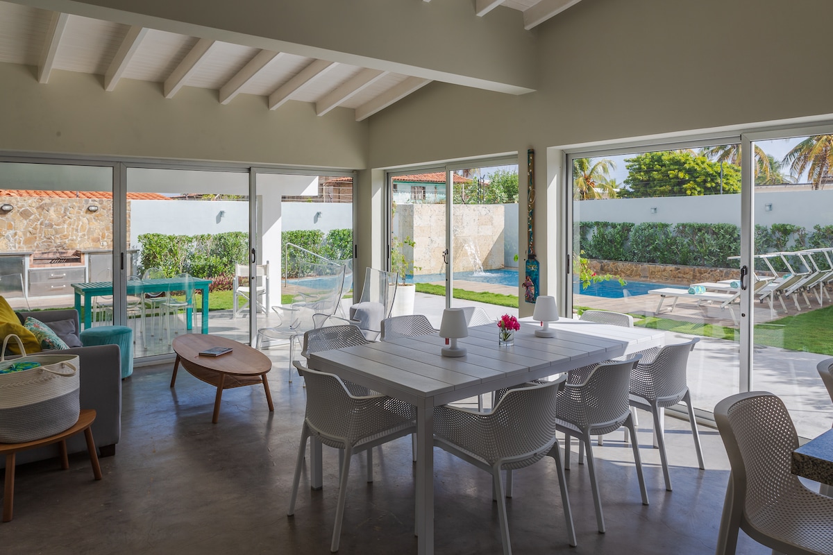 Réveillez-vous dans les Caraïbes : vue panoramique depuis votre lit King size et la douche. Appartement de luxe ouvert pour 4 personnes (lit King size + canapé-lit). Le complexe dispose d'une piscine, d'une aire de jeux et d'un accès direct à une plage tranquille. Entièrement équipé avec une cuisine gastronomique et une connexion Wi-Fi par fibre optique. Zéro stress : renseignez-vous sur notre forfait Moto Scooter pour vous déplacer sur l'île. Votre retraite haut de gamme vous attend !