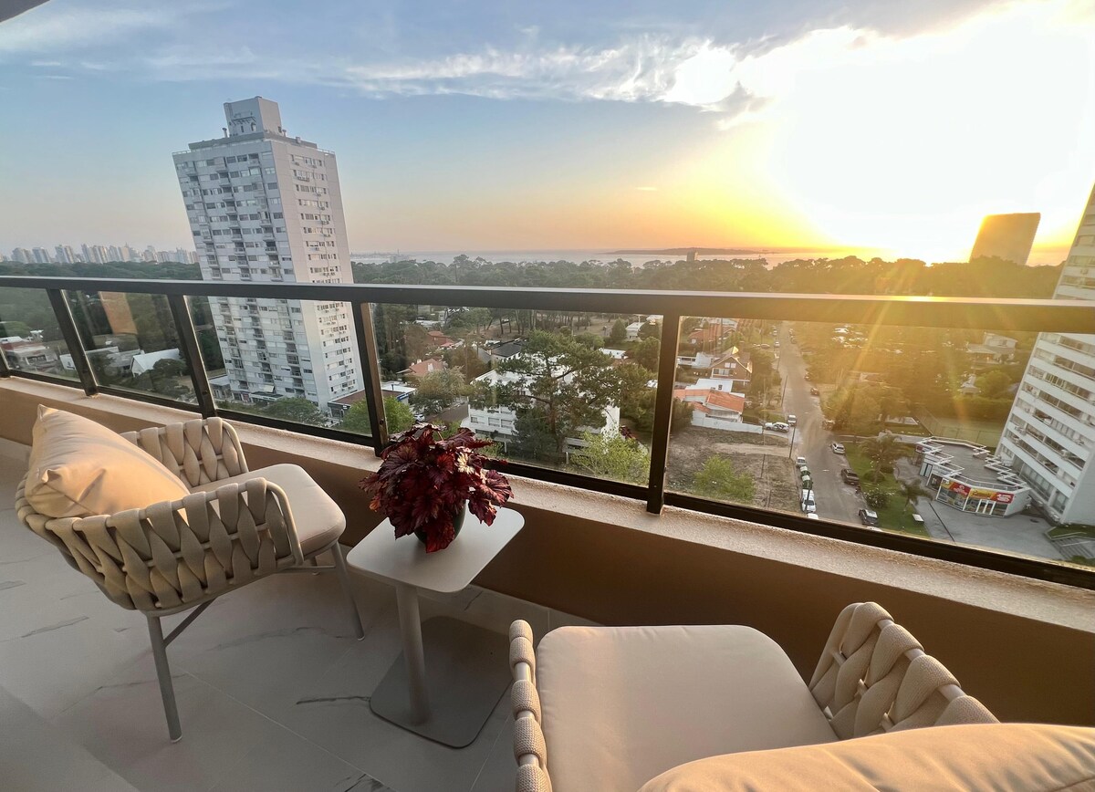 Appartement moderne pour 2 personnes entièrement équipé avec vue spectaculaire sur la mer et la péninsule avec 2 balcons, situé à quelques rues du centre et des plages mansa & brava. Comprend l'utilisation de son propre garage, des équipements de haute catégorie tels que piscine intérieure et extérieure, sauna, salle de sport, salon d'affaires et réception ouverte 24 h/24. Idéal pour se détendre et profiter de Punta del Este tout au long de l'année ou combiner repos et travail car il dispose d'une connexion Internet rapide (200 Mbps).