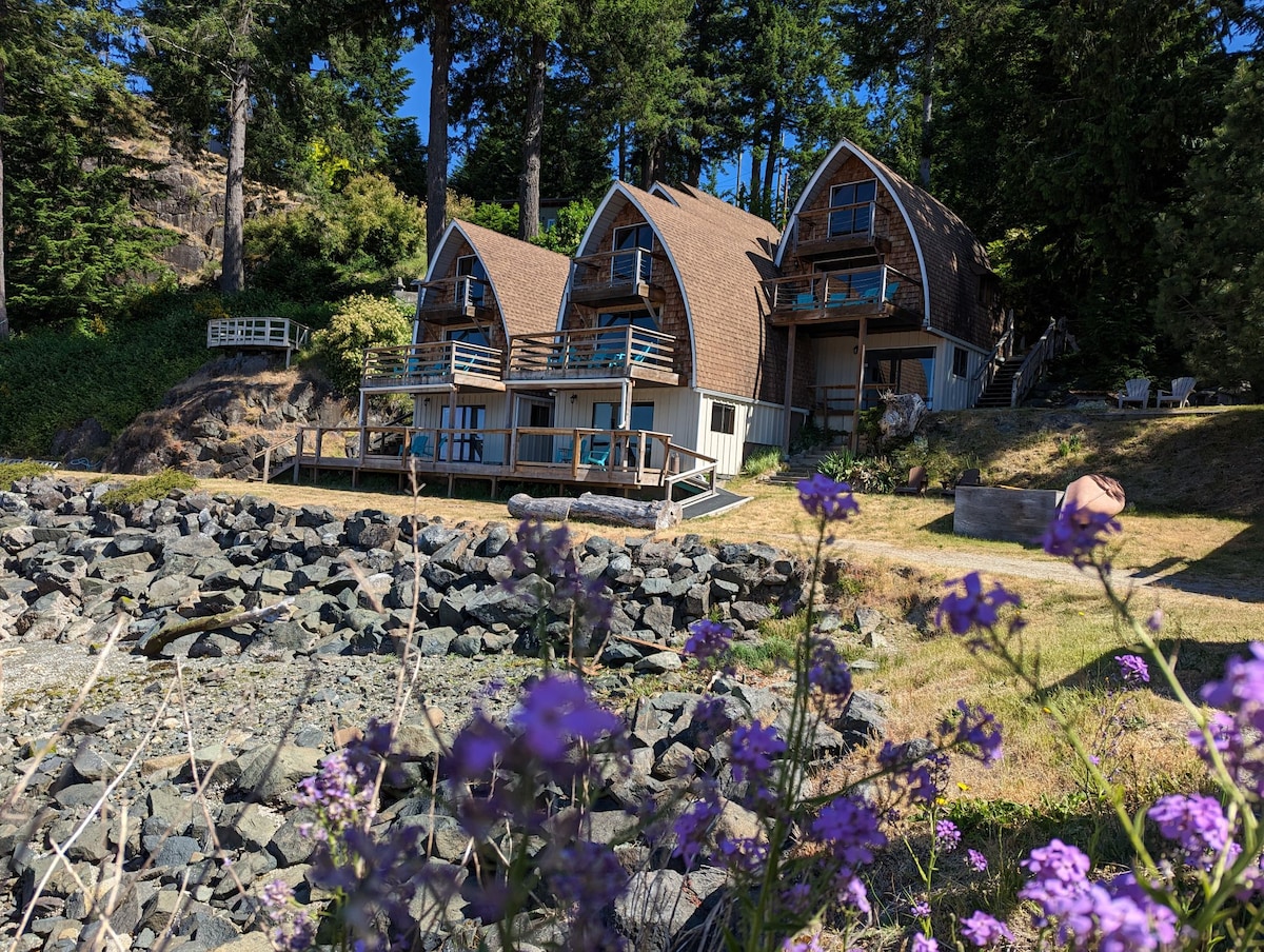 Vous ne voudrez plus quitter cette escapade unique en bord de mer. Niché dans le port de Gowlland sur l'île Quadra, le Jade Resort offre des vues imprenables et une retraite paisible. Nos 10 suites à flanc de colline surplombent l'eau, parfaites pour se détendre et regarder les marées. À quelques minutes des plages, des sentiers et de Rebecca Spit. Chaque suite comprend un monoculaire pour observer la faune. Pas de télévision - intentionnellement - afin que vous puissiez vous déconnecter et profiter de la beauté naturelle qui vous entoure.