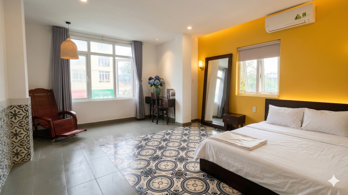 Tout est simple dans cet endroit paisible et central. Blue Sea House Sunrise - 2 chambres, 3 grands lits, 2 toilettes, salon et cuisine, avec un design typique de la mer bleue et situé au centre du tourisme marin, vous apportera l'expérience intéressante du voyage pour découvrir la beauté cachée du pays du Vietnam