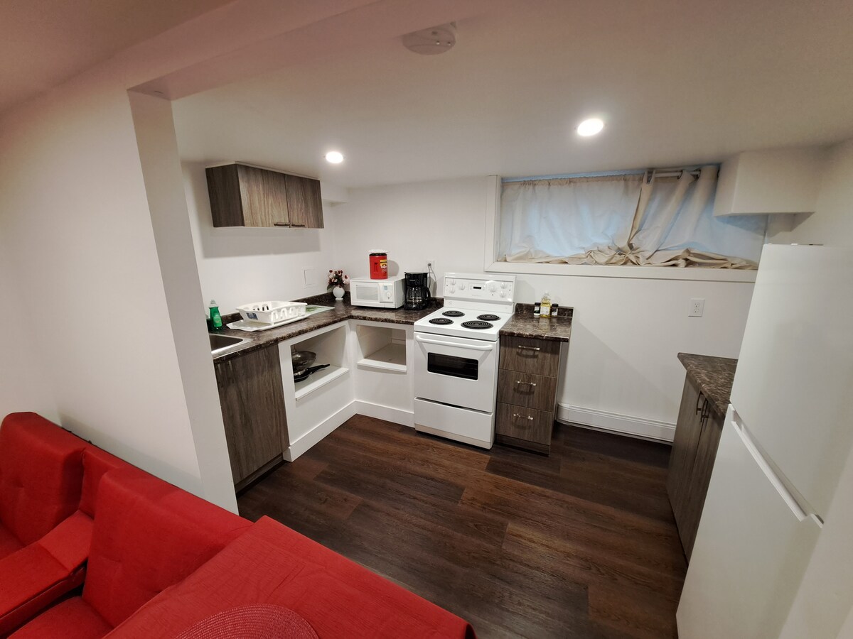 Studio mignon et confortable fraîchement rénové. Cuisine équipée, espace repas pour 2, canapé double profondeur pour regarder des films sur l'écran de la télévision, lit queen size, douche (hauteur de 6’6’ ’/2m max)… etc. Tout pour faire de notre appartement votre base pendant que vous explorez tout ce que la ville de Québec peut offrir.