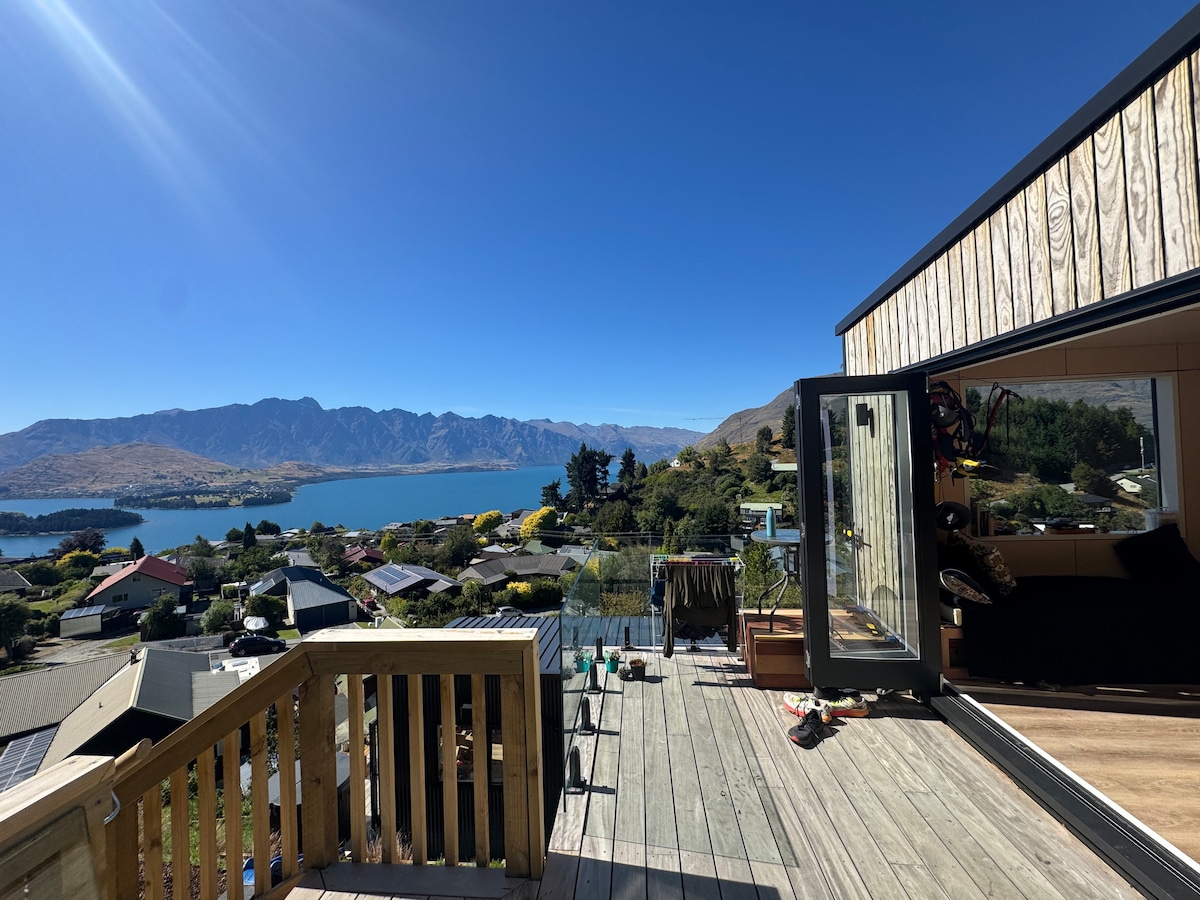 Retraite paisible à Fernhill avec une vue imprenable sur le lac et les montagnes. Ce refuge de deux chambres dispose d'une chambre queen, d'une chambre double, d'un spa privé, d'un espace barbecue et d'une salle de cinéma intérieure. Parfait pour les couples, les familles ou les amateurs d'aventure. Rangement sécurisé des skis/vélos inclus. À seulement 5 minutes du centre de Queenstown et à proximité des sentiers pittoresques, du bord du lac et des pistes de ski. Une base confortable et privée pour se détendre ou explorer tout ce que Queenstown a à offrir, le tout dans un cadre calme et pittoresque.