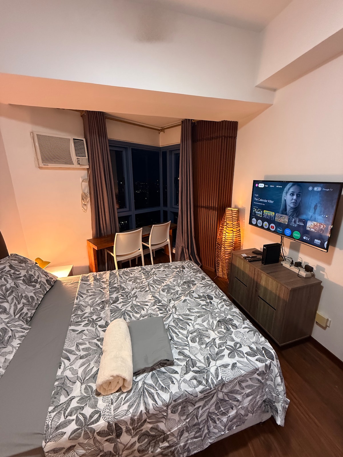 Conçu avec soin avec une touche moderne, ce studio confortable au 43e étage offre confort et commodité pour les voyageurs, les couples ou les télétravailleurs. Profitez de matins paisibles et de nuits reposantes au-dessus de la ville. • Lit queen confortable avec des draps frais • Équipé d'un fer à repasser et d'un sèche-cheveux pour votre confort • Espace propre et confortable pour un séjour reposant • Près de Robinsons Place, Intramuros et Luneta Park • Situé juste en face de l'ambassade des États-Unis à Manille