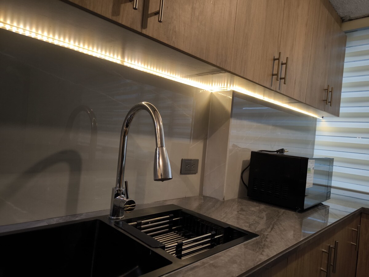 El departamento tiene: cerradura inteligente y acceso con código, cocina, nevera, lavadora y secadora, horno,cocina, bebedero de agua La sala tiene TV de 60" 4K con dirextv Tv, apple TV, netflix, Wifi de alta velocidad 300 mb, un sofá cama, las cortinas son eléctricas, la habitación tiene sábanas, cobijas, cobertores, mantas y toallas nuevas , calentadores electricos, TV de 55" en el dormitorio y con un patio con sillas y parasol privado. Se implemento un vidrio acústico para confort auditivo