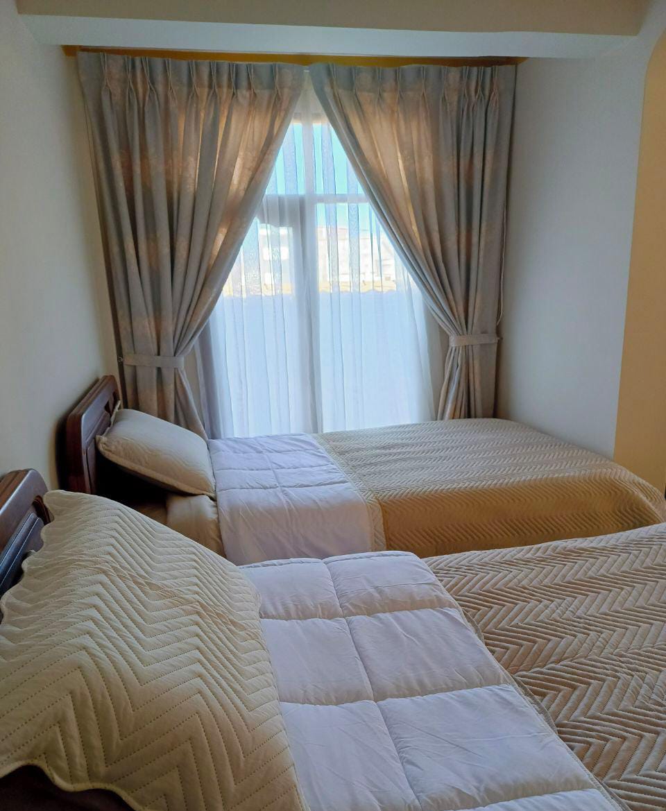 Découvrez le confort de notre appartement, avec une vue panoramique imprenable sur la ville et une charmante terrasse privée donnant sur le parc Bolívar. Plongez dans la sérénité de cette maison confortable et sûre, située dans un quartier résidentiel calme à quelques pas de la citadelle judiciaire, du Sucre Tennis Club, de Boliviana de Aviación, et à quelques minutes de la place principale et des principaux sites touristiques de la ville. Préparez-vous à vivre une expérience inoubliable !