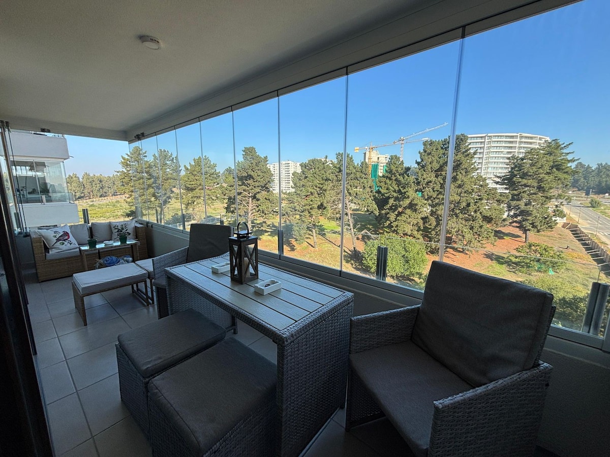 Bel appartement en bord de mer, vue panoramique assurée sur la plage amarilla, Concón. Grande terrasse de type ouvert, ce n'est pas un bâtiment vertical avec un balcon. Appartement meublé pour 4 personnes, il dispose d'une pièce principale avec un lit double et un lit gigogne (1 place chacun) dans le salon. Grande terrasse avec mobilier d'extérieur. WIFI dans l'appartement (BAM) Netflix, pas de télévision par câble. Piscine Blanchisserie Petit parking (ATTENTION) Possibilité d'en obtenir un autre.