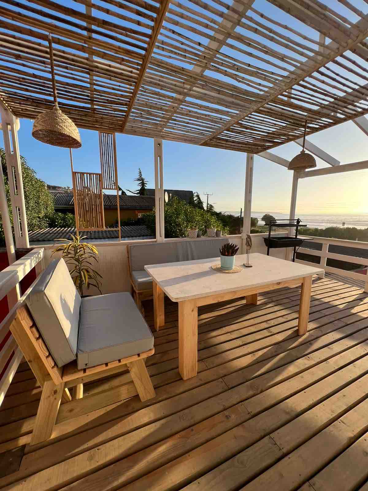 Chalets équipés en première ligne face à la mer à quelques pas de la plage. Dans ses environs, vous pourrez profiter de la flore et de la faune marine, de la plage de sable blanc et des meilleurs couchers de soleil du Pacifique. Dans un périmètre de 100 mètres, vous trouverez un mini-marché, des cafés et un restaurant bien connu de la région qui est ouvert toute l'année. Nous sommes à quelques minutes en voiture du supermarché Jumbo, pharmacie et bientôt Copec. Chaque cabane comprend une terrasse grill avec vue sur la mer et un parking.
