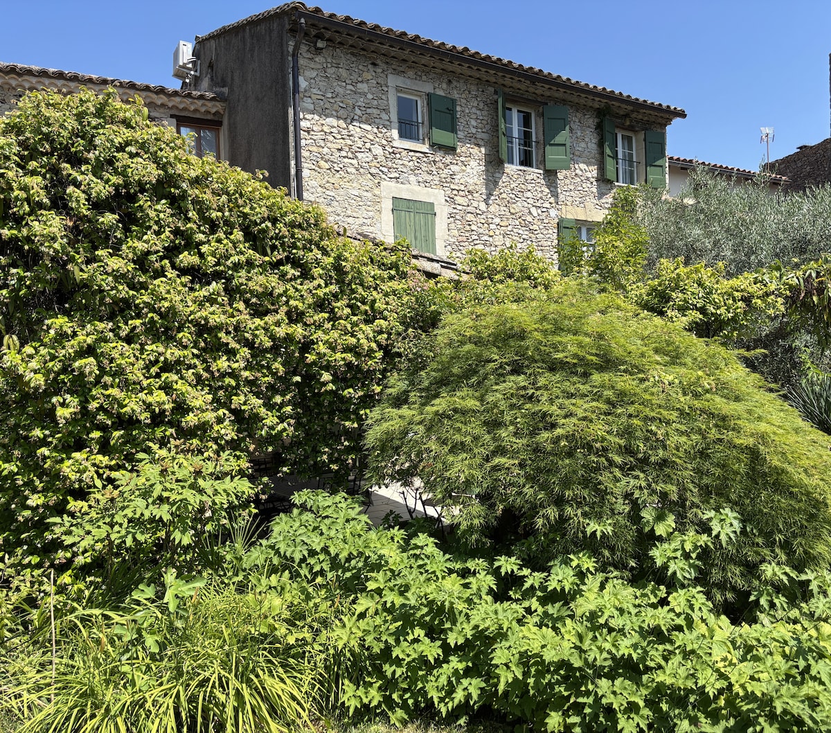 Entre Cévennes et Camargue, dans le quartier historique d'un authentique village gardois de tradition taurine, demeure du XVIII° rénovée avec goût , alliant harmonieusement l' ancien et le contemporain. 10 mns à pied :centre aquatique , rivière, voie verte marché et tous commerces. Grande pièce à vivre 80 m2 terrasse couverte. Magnifique jardin paysager .Très confortable . Climatisation gainable. Idéale pour famille ou réunion entre amis . Equipements haut de gamme . Parking gratuit.
