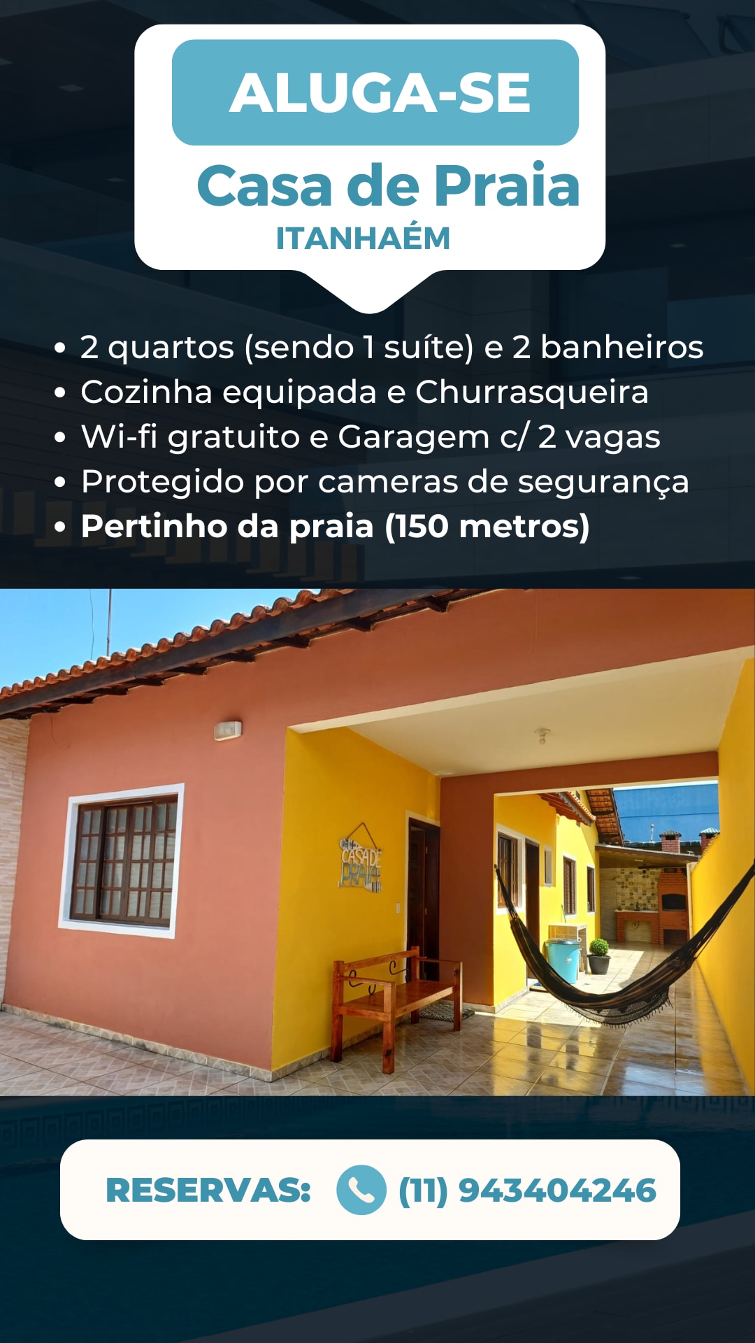 Mon espace est situé en bord de mer et destiné aux familles ou aux groupes d'amis. Il dispose de transports en commun, est situé à proximité des villes (Itanhaém et Mongagua). Vous allez adorer, c'est une résidence destinée au repos, une propriété très accueillante pour un barbecue/grill en bord de mer.... Dormez avec le bruit de la mer... ayez le confort d'être sur la plage, dans la piscine et dans la maison en même temps ! ! !