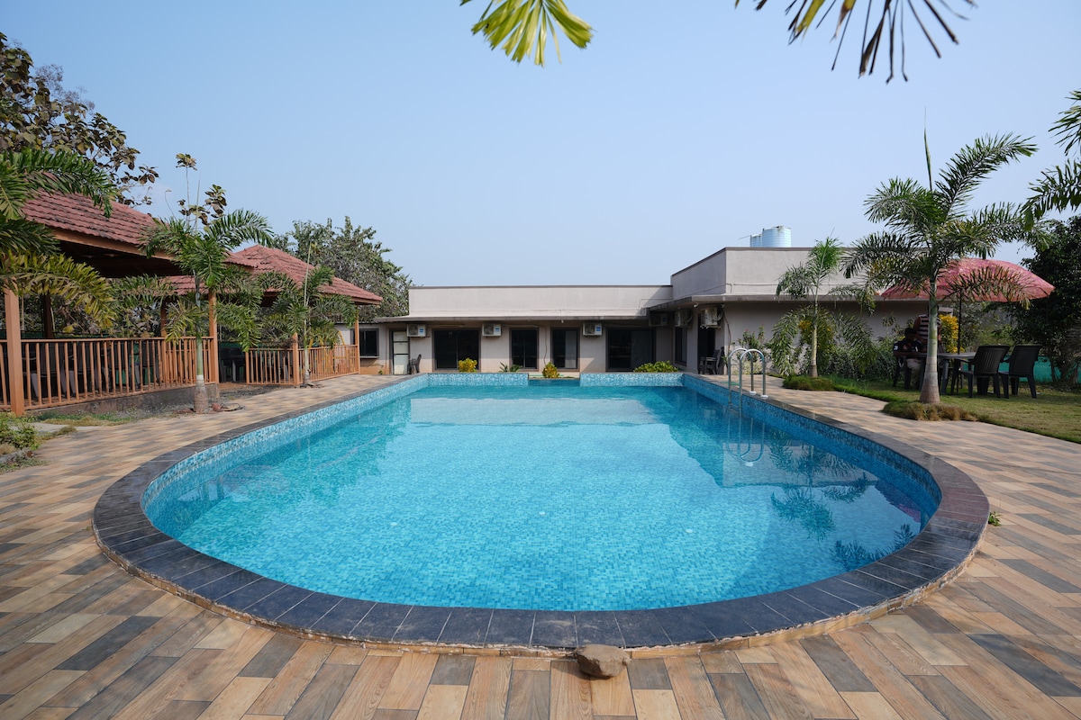 Des séjours acceptant les animaux de compagnie, des expériences culinaires uniques et un bien-être inégalé vous attendent Détendez-vous dans ce logement calme et élégant. Grandes chambres de style chalet dans une plantation de noix de coco établie à Alibaug, ce qui en fait un cadre idyllique pour des vacances heureuses. Cette propriété privée dispose de HUIT GRANDES CHAMBRES de style chalet séparées avec un salon au bord de la piscine et un espace salon séparé pour les repas. Chaque chambre est exclusive pour les voyageurs, seuls la PISCINE et le salon sont partagés.