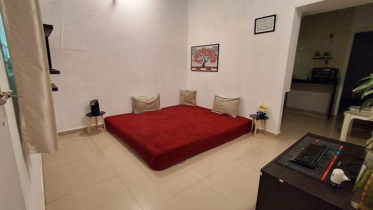 Appartement spacieux bien meublé avec chambres climatisées avec commode/placard, lit king size avec salle de bain attenante. Magnifique balcon aéré et agréable avec vue sur le jardin, Wi-Fi gratuit, se sent comme chez vous. Appartement sans moustiques et sans poussière. Ce logement est parfait pour les familles NRI. Paisible, confortable et sûr. Cuisine avec tous les appareils et ustensiles. Épicerie et marché aux légumes à distance de marche. Réduction au mois et à la semaine dans les tarifs. Temps d'arrivée flexible.