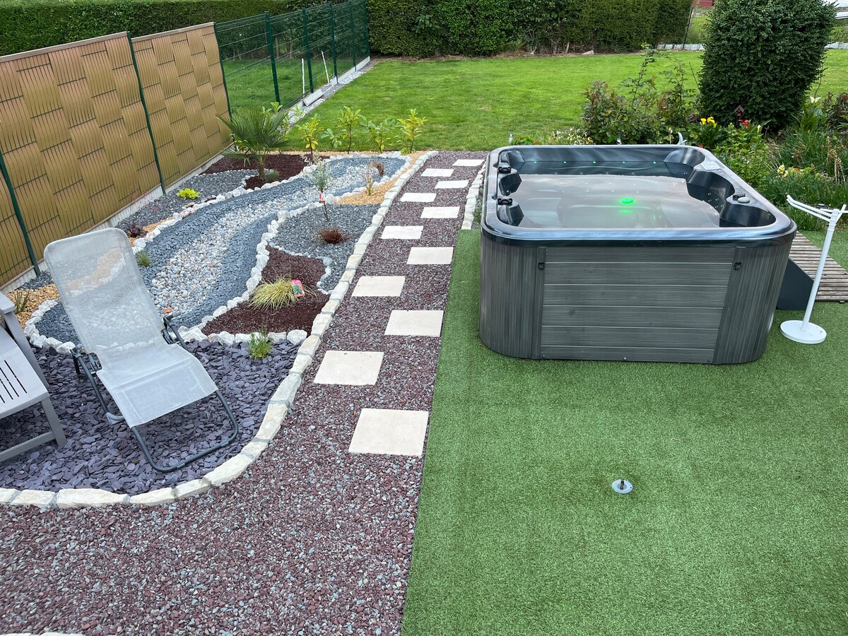 ✨Envie de vivre un Moment Magique en Amoureux ou entre Amis ?❤️ Offrez-vous une parenthèse hors du temps dans un Grand Spa privatif à l’ambiance romantique sous le Ciel Étoilé, véritable invitation au voyage sous les tropiques🌴 💦Détendez-vous dans l'Espace Bien-Être exceptionnel avec • Spa XXL • Sauna • Smart TV 🌿Situé à l’intérieur avec vue sur le jardin, profitez d’un séjour inoubliable été comme hiver 🏡Le Lodge & Sweety❤️Spa, magnifique maison en pierres nichée au calme de la campagne