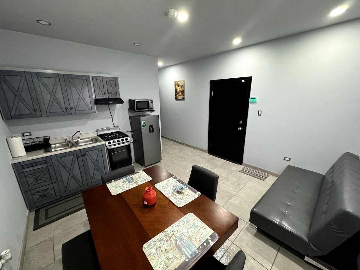 Experience the perfect home away from home! Enjoy the comfort of this brand new, quiet and secure apartment, complete with all essential amenities. Go out to the patio or terrace and take advantage of the laundry room. Located in the heart of the city, you are just a 7-minute drive from the lively tourist area, with easy access to the main roads. Plus, you are just 30 minutes from the charming Valle de Guadalupe. Your ideal getaway awaits you! **No private parking**
