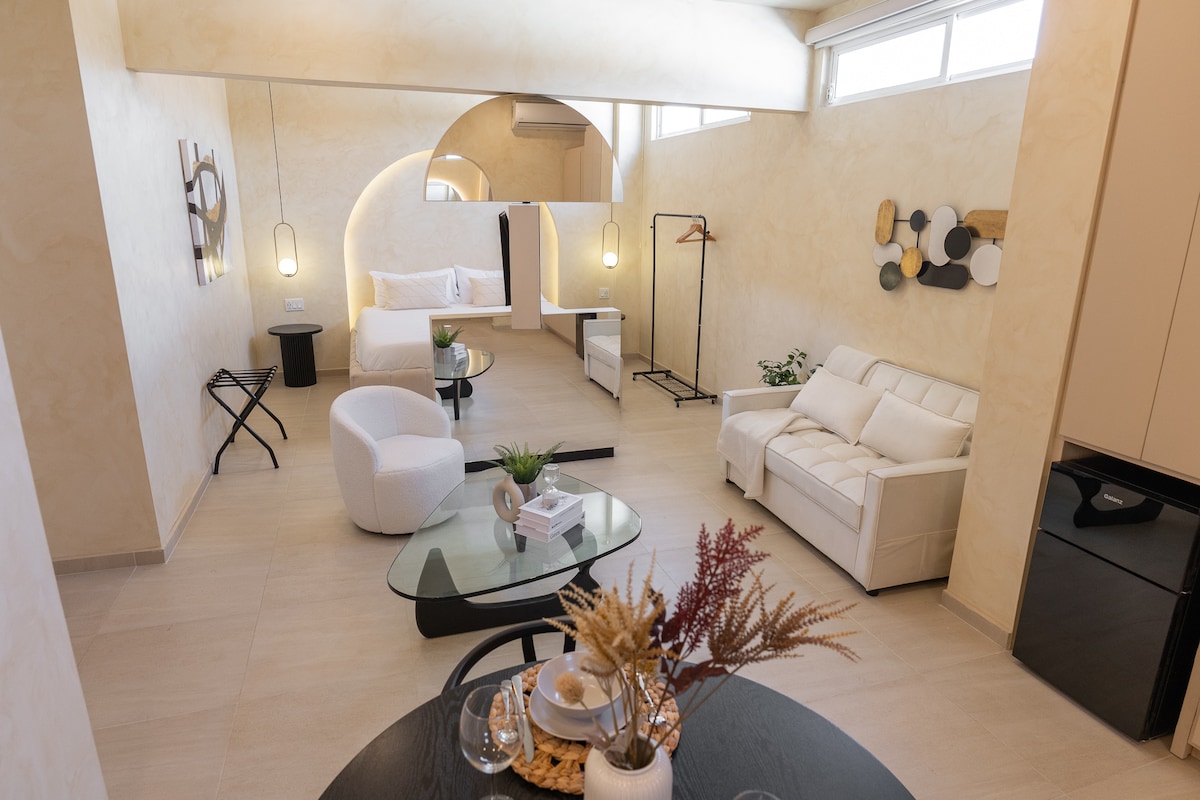 Welcome to our luxury and comfortable studio, designed to provide 5-star experiences for couples. With a King size bed, rain waterfall shower with perfect pressure and temperature, high-speed Wi-Fi, complementary coffee service, sofa-bed for kids, premium finishes and rotating TV, this studio is better than any hotel room or suite. This is a new unit that was finished in October of 2023, with everything out-of-the-box brand new. The stay includes private gated parking. Located at Casas Sanblu.