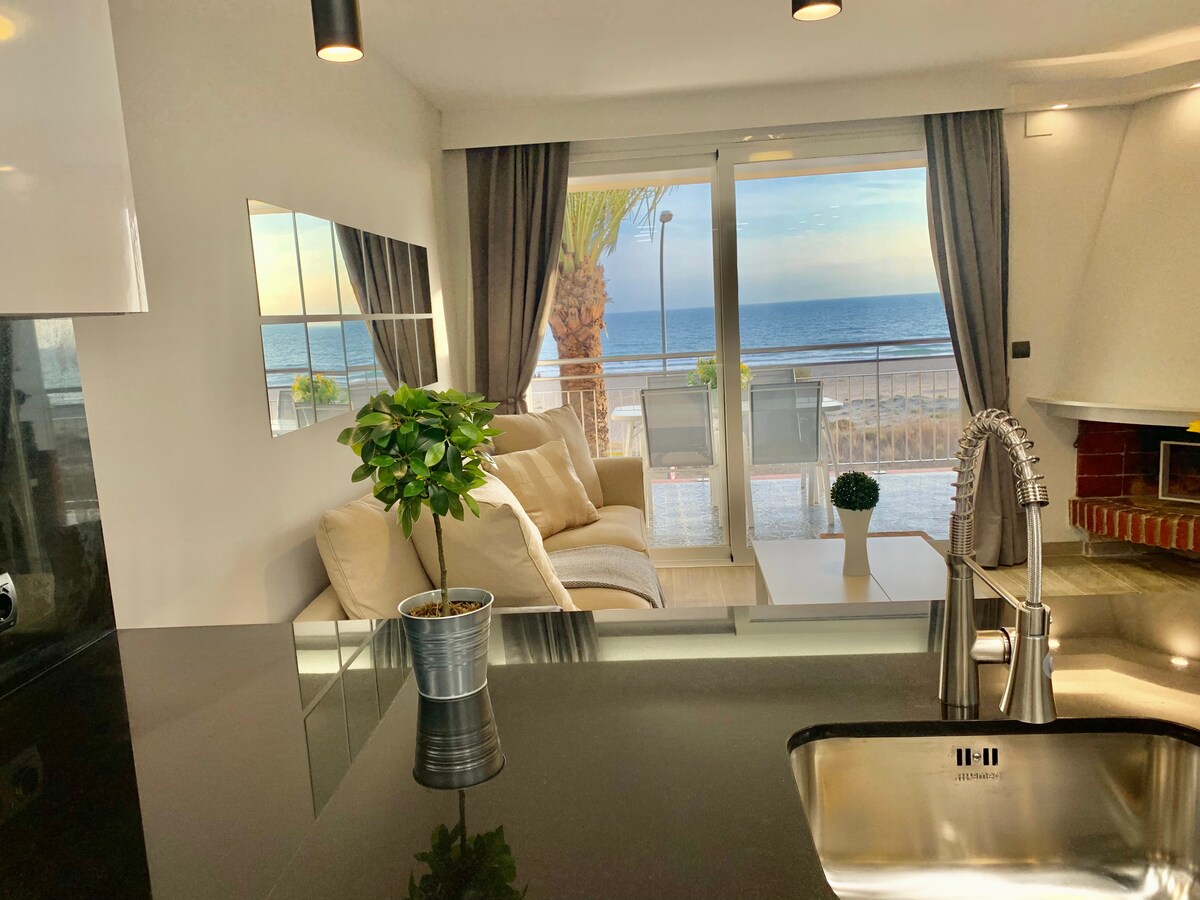 Profitez d'un séjour unique dans cet appartement spectaculaire situé en première ligne de plage, avec une vue imprenable sur la mer. Espace pour jusqu'à 3 personnes, avec deux chambres et une troisième aménagée comme bureau. Terrasse spectaculaire, parfaite pour se détendre tout en profitant de la vue sur la mer. Elle est équipée d'une table et de chaises pour les repas en plein air, ainsi que de canapés extérieurs. Piscine commune. Place de parking privée. Cuisine entièrement équipée avec tout ce dont vous avez besoin