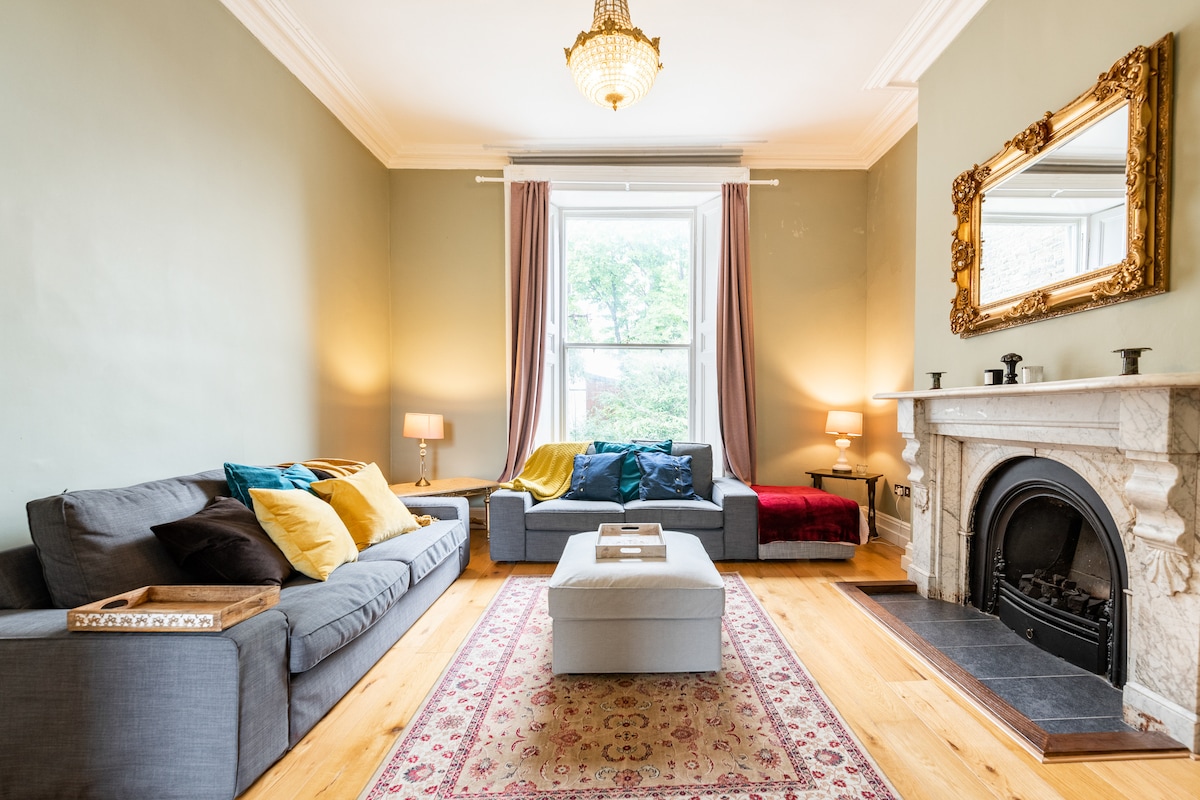 Cet appartement lumineux et spacieux d'une chambre se trouve en bas des Superhosts d'une maison géorgienne de Portobello, à distance de marche de la plupart des principaux sites touristiques de Dublin. Il dispose de 3 cheminées d'époque colorées des années 1840, d'un mobilier confortable et d'une belle vue sur un olivier florissant. Veuillez noter que le charme de la vieille maison de ce logement n'est pas fait pour tout le monde. Il y a quelques bizarreries, comme la douche dans le placard et les vieilles planches grinçantes au-dessus qui pourraient déranger les voyageurs sensibles au bruit.