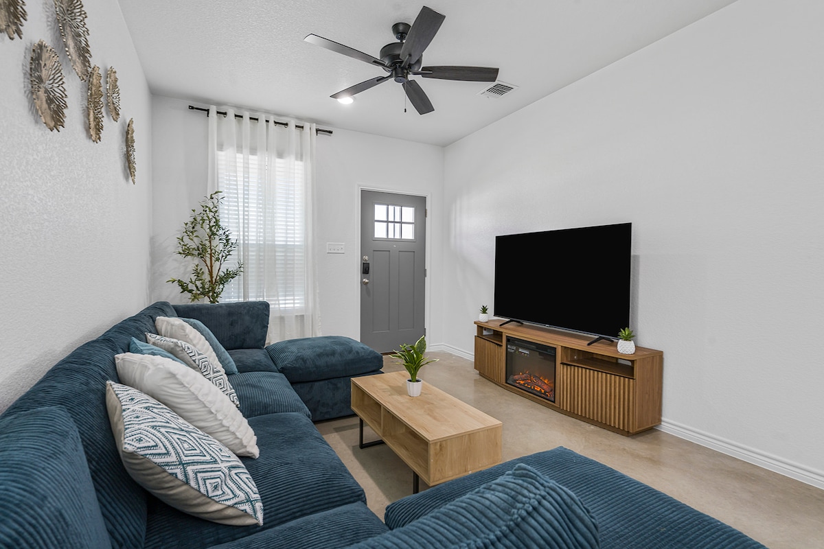 Construit en janvier 2020. De nombreux voyageurs l'ont apprécié depuis. Vous aussi, vous l'apprécierez. À seulement 10 minutes de l'hôpital VA ou du Baylor Scott & White Medical Center ! À l'intérieur, vous trouverez toutes les commodités nécessaires pour passer un merveilleux séjour. Besoin d'une connexion Wi-Fi rapide ? Elle est là. Amenez la famille pour une escapade ou installez-vous dans un endroit relaxant tout en travaillant dans la région. La cuisine est prête pour une collation rapide ou pour cuisiner un repas complet, et il y a beaucoup d'espace pour que chacun ait un peu de temps pour soi ! La 4e chambre dispose d'une télévision et d'un canapé-lit.