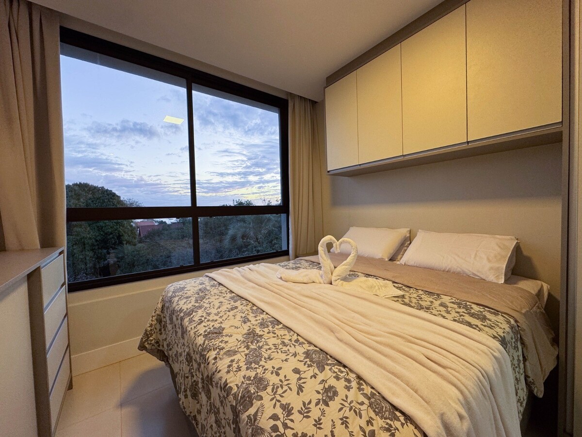 Détendez-vous, déstressez et profitez du soleil dans l'un des plus beaux endroits du Brésil ! Depuis le balcon, vous pourrez profiter de la brise et de la vue en fin d'après-midi ou vous réveiller et voir si la journée est pour la plage ou pour une piscine chauffée. Appartement avec un emplacement idéal pour les célibataires ou les couples qui aiment profiter de l'agitation des bars et restaurants de Jurere Internacional sans avoir à marcher beaucoup. Idéal aussi pour amener de jeunes enfants et profiter de la tranquillité et des avantages d'un resort.