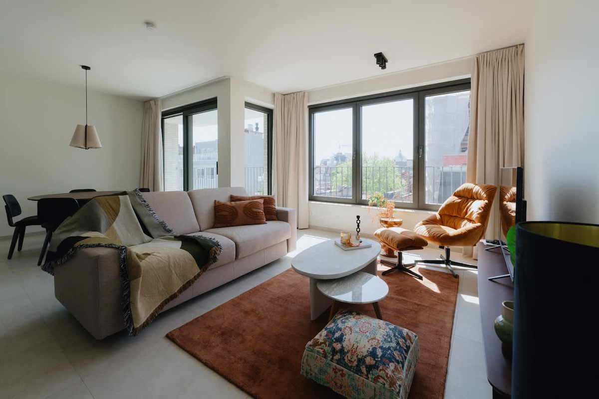 Notre appartement de 93 m² est situé dans le centre d'Anvers dans une petite résidence et dispose de 2 chambres avec des lits de qualité, une cuisine américaine entièrement équipée, une salle de bain comfortable avec baignoire douche à effet pluie et des toilettes séparées. Déco mélange ancien/moderne. Une Smart TV, une excellente connection WiFi, un lave-linge et un séchoir pompe à chaleur sont également à votre disposition! Nous parlons couramment français, ça facilite nos échanges!