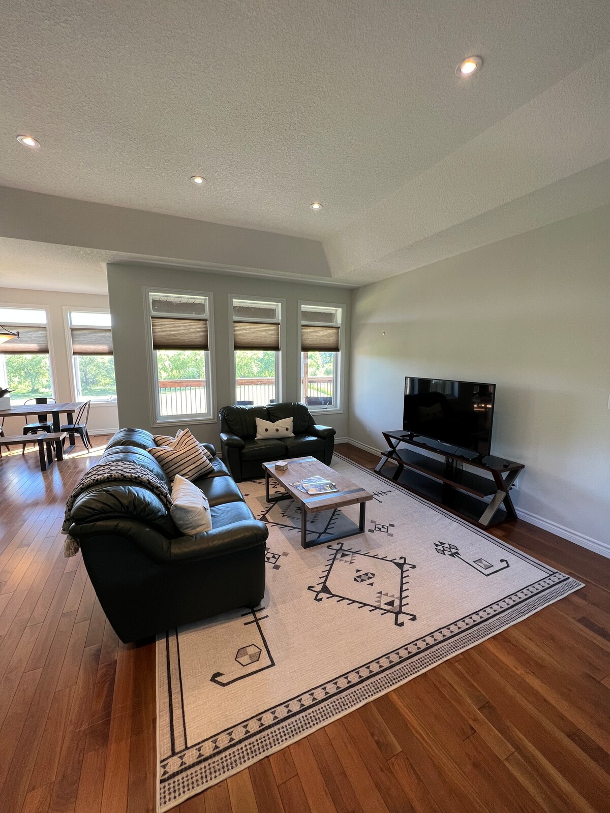 Une maison de ville parfaitement située à Quinte West dans un quartier calme et récent. Pratique pour l'autoroute 401, le comté de Prince Edward, Belleville, Trenton et la baie de Quinte. Proche du Loyalist College et de la 8 Wing. Elle offre une suite principale avec lit King Size et salle de bain attenante, et une deuxième chambre avec un lit double superposé. Les équipements comprennent tout le nécessaire pour la cuisine et un barbecue. Accès à la buanderie et wifi illimité !