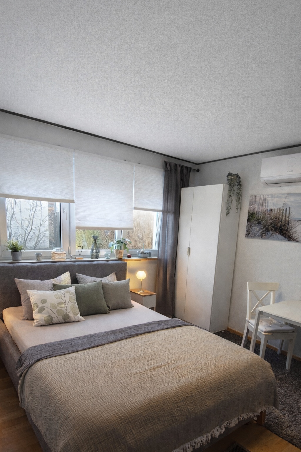 Unsere liebevoll eingerichtete Ferienwohnung am Fuße des Hohentwiels bietet dir einen ruhigen Ort zum Entspannen. Dich erwarten ein gemütliches Doppelbett, eine kleine Küchenzeile, ein modernes Bad mit Dusche sowie eine Klimaanlage für angenehme Temperaturen. Ideal für Paare, Alleinreisende oder Geschäftsreisende.