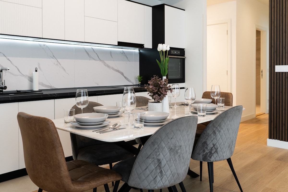 Bienvenue dans notre appartement au 10e étage du complexe Belgrade Waterfront ! Notre appartement est tout ce dont vous avez besoin lorsque vous recherchez une grande location indépendante avec un maximum d'intimité. L'appartement est parfait pour les grandes familles ou quatre couples, deux invités de plus peuvent être hébergés sur les lits supplémentaires. Ce complexe déjà bien connu vous offre des promenades romantiques le long des rives de la rivière Sava, différents cafés, restaurants, boîtes de nuit et magasins - tout est à deux pas de vous.