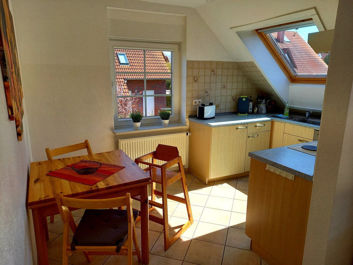Bienvenue dans notre confortable appartement de vacances de 2 chambres à proximité immédiate de la plage. Le Fewo offre une chambre à coucher, un espace de vie ouvert avec cuisine, salle de bain avec douche et un grand balcon. À l'extérieur, vous disposez pendant votre séjour d'une place de parking, d'une machine à laver, d'un espace dans la cave pour vélos, ainsi que dans le jardin d'un coin salon partagé avec barbecue.