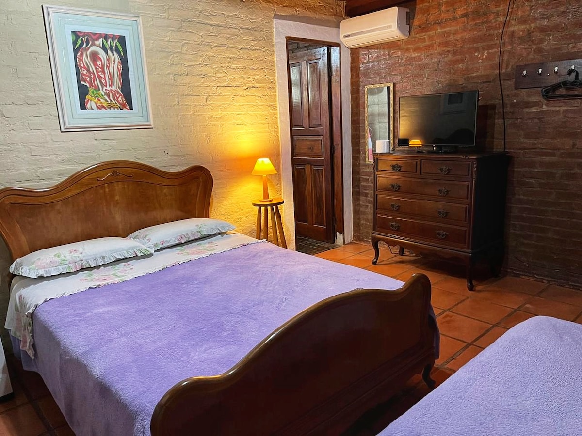 Suíte aconchegante bem no centro da vila de Mauá. Uma confortavel cama queem te espera para descansar depois de um belo dia de passeio pela região. A suíte tbm tem um sofá cama com tv, internet, frigobar e se for um dia ou uma noite quente de verão , o ar condicionado garante o seu bem estar.