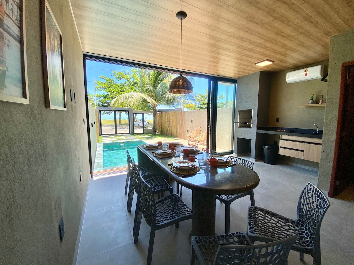 Maison duplex sur le sable à Ipioca, avec piscine privée Igui, barbecue et vue sur l'océan. Il y a 3 chambres climatisées avec de grands placards (1 suite), 3 salles de bains, un salon, un balcon et un espace bureau. Décoration soignée avec des pièces design, trousseau de qualité et beaucoup de confort. Cuisine complète équipée de tous les ustensiles, y compris AirFryer. Télévision connectée, Wi-Fi rapide et garage couvert pour 1 voiture. Plage paradisiaque et tranquille, avec piscines naturelles accessibles à pied ou en bateau.