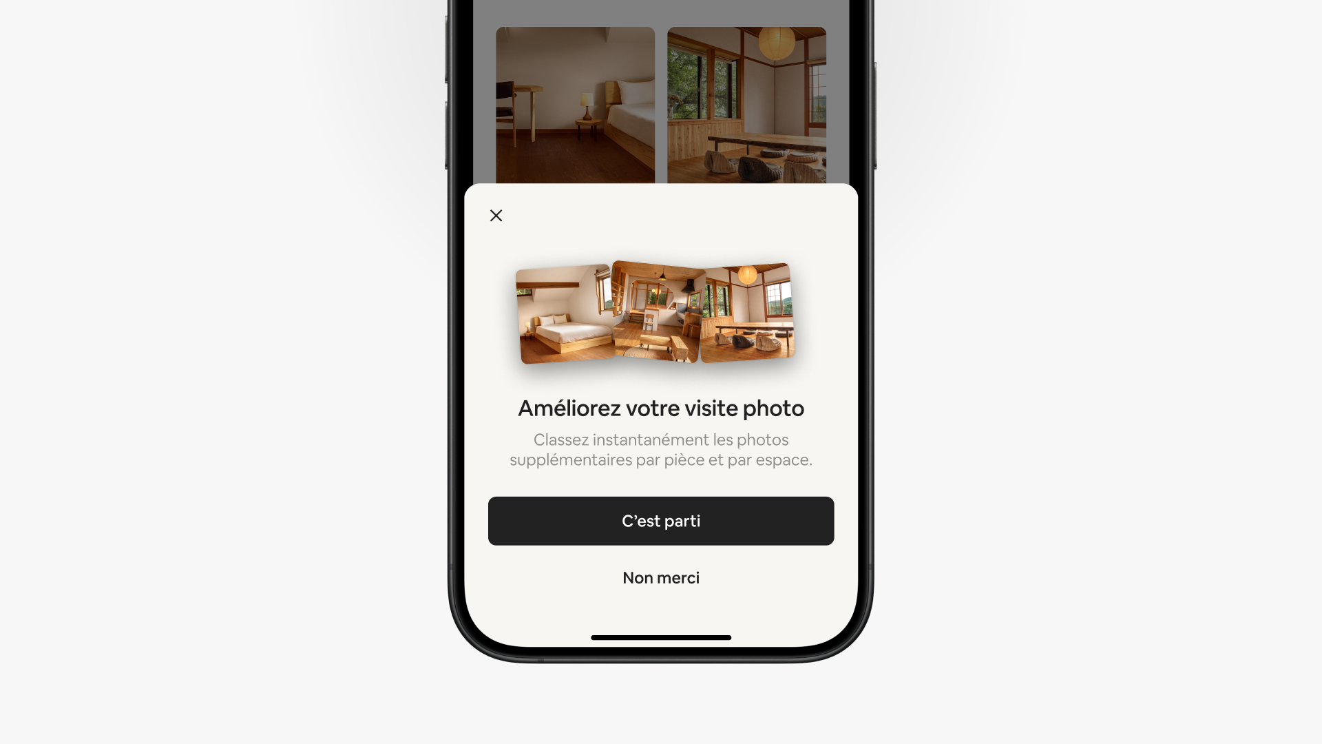 Aidez les voyageurs à se faire une idée de l'agencement du logement en créant une visite photo. Vous pouvez utiliser l'IA pour organiser automatiquement vos photos par pièces et par espaces, puis modifier manuellement la visite.