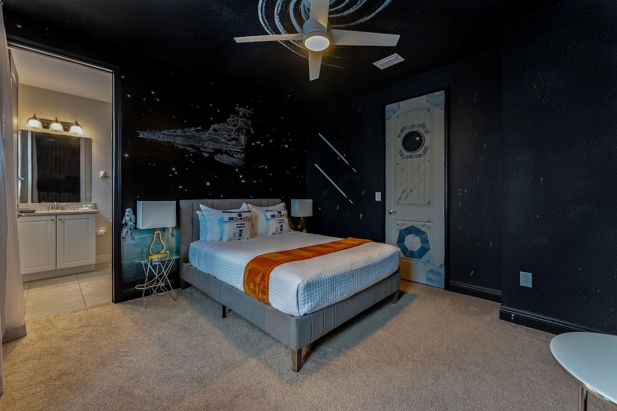 Vos vacances magiques commencent ici ! À seulement 15 minutes de Disney World, cette belle maison familiale offre des chambres luxueuses et à thème, et du plaisir, parfaites pour créer des souvenirs inoubliables. Le logement est situé dans le quartier de ChampionsGate. Il dispose de 3 chambres, 2,5 salles de bain, d'un mobilier moderne et d'une connexion Internet ultra-rapide. Vous aurez accès gratuitement au centre de commodités Enclaves at Festival qui dispose d'une grande piscine avec accès à la plage, d'un parc aquatique pour enfants, de beach-volley, d'un mini-golf, d'un restaurant et d'une salle de sport.
