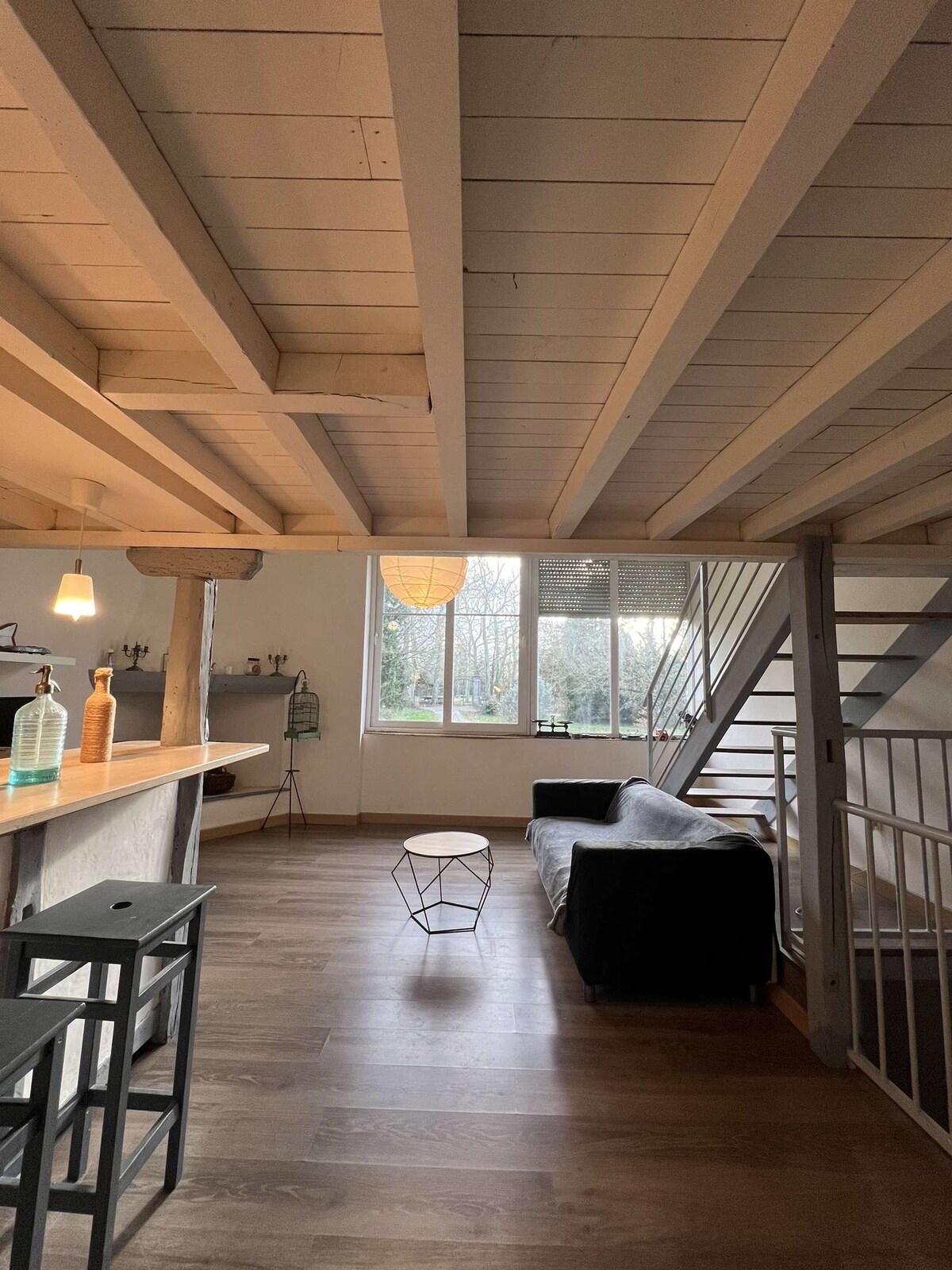 Bienvenue dans "Industrial Lodge" un loft situé en plein coeur d'un village calme à proximité de toute commodité. 85m² avec 1 chambre en Mezzanine. À votre arrivée, vous disposez d'une place de parking attitrée devant le logement ainsi qu'une cour aménagée pour prendre les repas en extérieur. Dans le loft aux ambiances industrielles (bois, métal, brique) tous les aménagements sont pensés pour que vous passiez un agréable séjour. La salle commune est spacieuse et conviviale. Laissez-vous tenter !