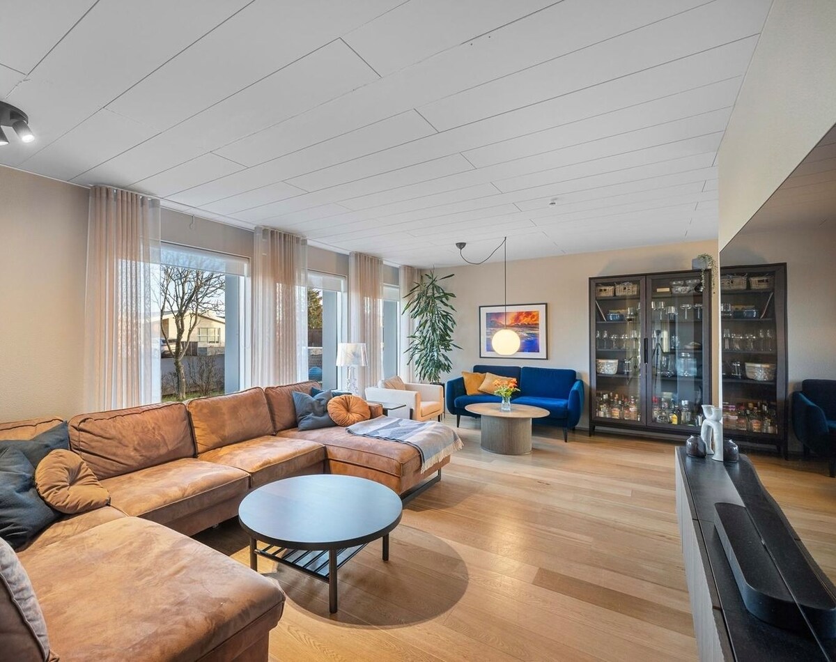 Ambiance unique avec une salle de sport, un sauna et un jacuzzi. 131 m²/1 410 pieds carrés avec une grande chambre et deux chambres plus petites. L'un des aspects les plus uniques est une très grande salle de bains avec un sauna et une petite salle de sport. Dans chaque zone, il y a un éclairage intelligent et un système Sonos multi-room. En marchant à l'arrière, vous arriverez au jacuzzi et au barbecue, qui sont tous deux fournis avec l'appartement.