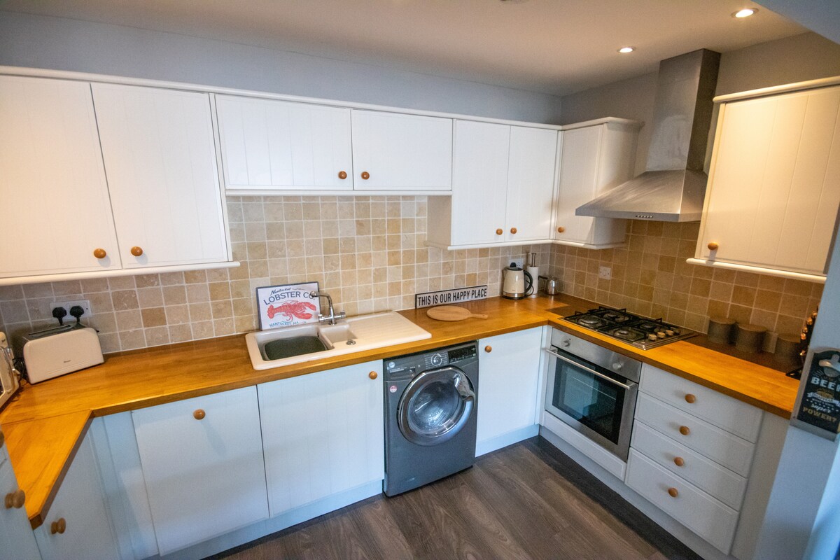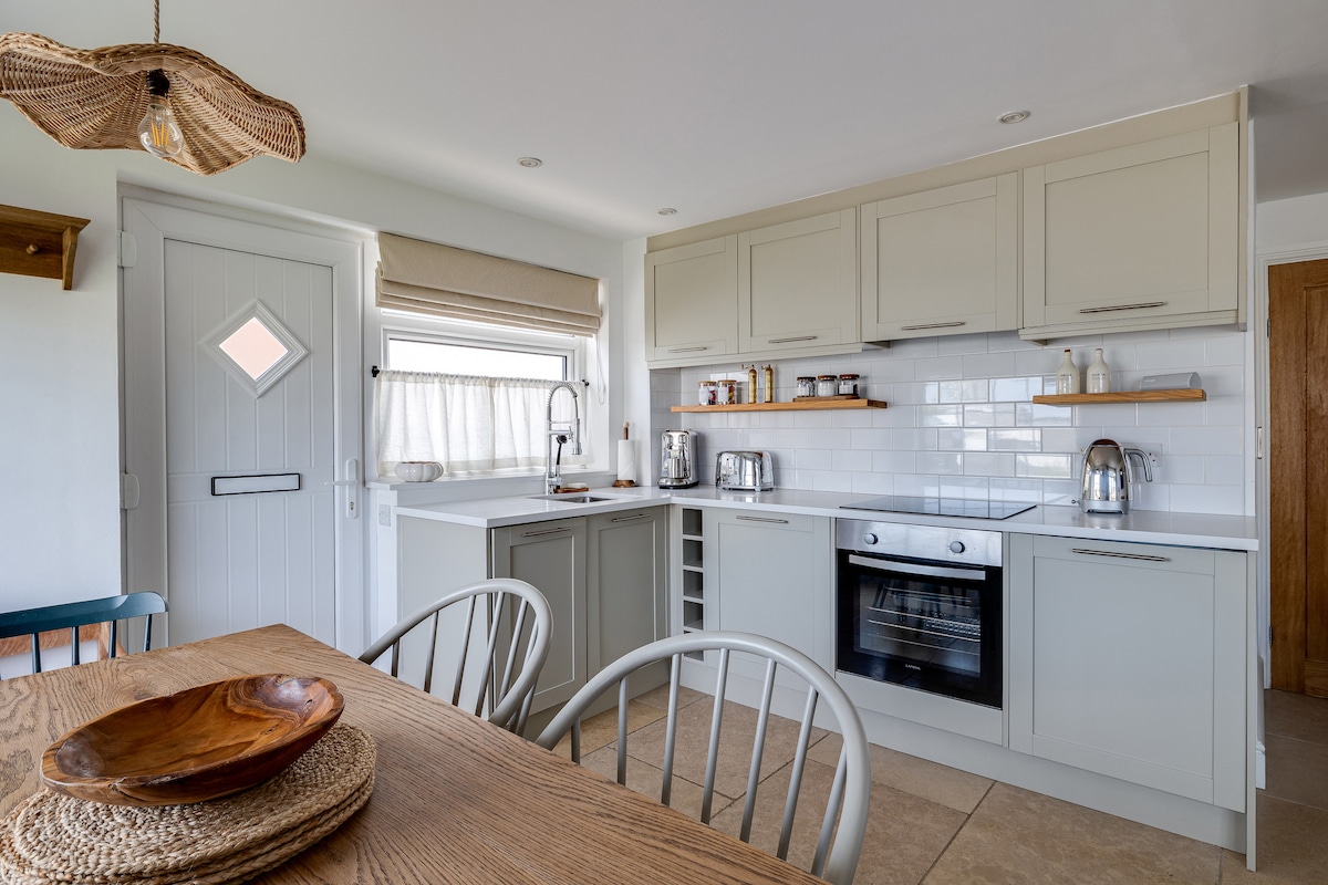 Le Crows Nest est un appartement au dernier étage avec vue panoramique sur la plage et la mer, ce qui en fait la maison de bord de mer idéale pour une famille jusqu'à 4 personnes. À 100 m à pied de la plage avec un espace de rangement pour tous les jouets de sports nautiques dans le garage. Chauffage central électrique complet pour un séjour confortable en toute saison. Ces fonctionnalités supplémentaires, notamment une machine Nespresso, une télévision connectée, une connexion Wi-Fi rapide, un siège de fenêtre et des plafonniers LED modernes, aident à en faire des vacances très spéciales. Il y a un lave linge dans le garage pour les voyageurs.
