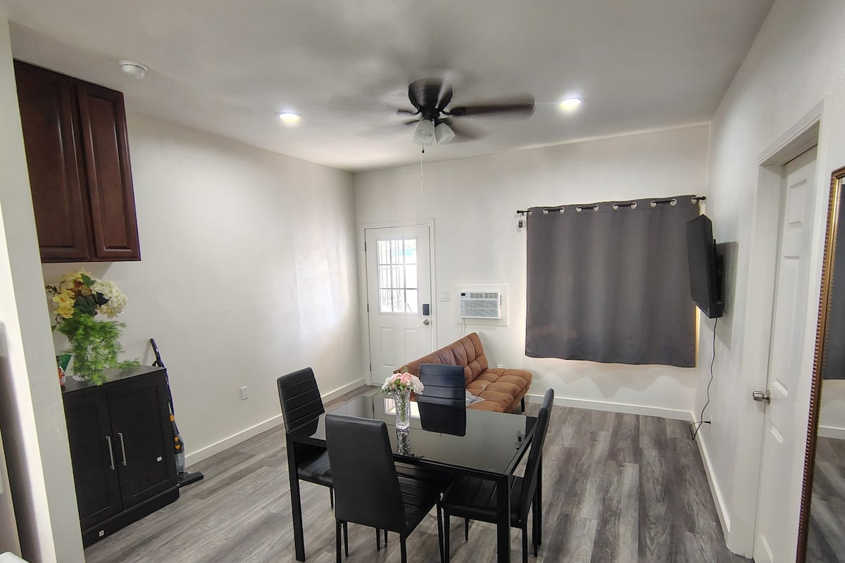 S'IL VOUS PLAÎT AVANT DE RÉSERVER, LISEZ L'ENSEMBLE de l'AD voir si ma maison vous convient. Pour quelqu'un qui est soucieux de son budget et qui cherche un logement propre, c'est l'idéal ! L'aspect général, l'état et l'ameublement de cette petite maison seraient considérés comme « basiques ». Situé au centre-ville de Fontana, qui est la partie la plus ancienne de Fontana, à proximité de la gare de Metrolink, des transports en commun, des restaurants et des dépanneurs. Situé à proximité de la voie ferrée. « Aucun accès à la cour arrière n'est autorisé »