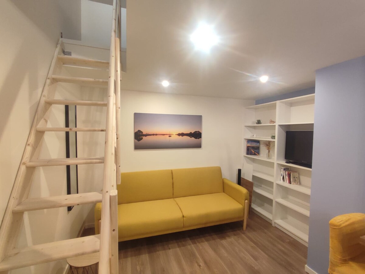 Détendez-vous dans ce studio tout neuf et tout confort, au calme mais proche des commodités. Vous trouverez en arrivant une jolie cuisine fonctionnelle et un petit coin salon cosy. Toujours au RDC, une petite salle d'eau avec lave linge. En mezzanine, vous trouverez un joli couchage double. A l'extérieur, une petite terrasse vous accueillera avec une jolie vue sur le grand jardin où gambadent les animaux: lamas, moutons, chèvres, ... Pour vos balades, le sentier côtier vous attend à 300m à pied!