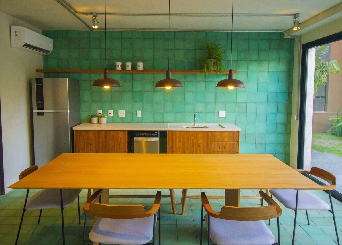 Détendez-vous dans un espace moderne près du centre commercial Iguatemi, du shopping Ribeirão, de l'hôpital Unimed et de l'Unip. Le studio 206 dispose de la climatisation, du Wi-Fi, d'un garage et d'une cuisine. Découvrez le premier coliving de Ribeirão Preto, qui propose une piscine, une salle de sport, un espace de coworking, une laverie, une supérette et une superbe chambre partagée avec cuisine de style industriel, table de billard et canapés confortables. Venez vivre cette expérience unique et profitez de tout ce que notre logement a à offrir !